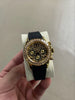 The "Gold Universe Dial" watch is a stunning timepiece that captures the essence of luxury and elegance. Its radiant gold dial shimmers with a rich, lustrous finish, resembling a celestial landscape. Adorning the interior are meticulously scattered stones that twinkle like stars against the golden backdrop, creating a mesmerizing effect reminiscent of a twinkling night sky. This exquisite arrangement not only adds a touch of glamour but also ensures that each glance at the watch feels like a journey through the universe. Complemented by a refined case and strap, the "Gold Universe Dial" is not just a functional accessory; it is a statement of style and sophistication that elevates any outfit to new heights.