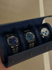 The timeless design of this box features secure closures, ensuring that its contents are both safe and easily accessible. Ideal for personal use or as a thoughtful gift, this dark blue leather box stands as a testament to quality craftsmanship and luxurious style, making it an essential addition to any collection.