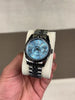 The "Baby Blue Ice Dial" watch radiates a refreshing elegance with its captivating light blue dial, resembling glimmering ice under sunlight. This exquisite piece features delicate silver-tone hour markers and hands that enhance its sophistication. The date display at the 3 o'clock position adds practicality without sacrificing style. Housed in a sleek stainless steel case, the watch is paired with a refined stainless steel bracelet, striking a perfect balance between comfort and durability. Ideal for any occasion, the Baby Blue Ice Dial is a stunning accessory for the modern individual.