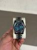 The sleek silver hands enhance the metallic aesthetic, effortlessly complementing the overall design. With a practical date window at the three o'clock position and a five-link bracelet, this watch offers both functionality and a statement of style. Whether displayed on your wrist or on a cushion, the "Mysterious Majesty Dial" promises to captivate and enchant, making it an exquisite addition to any collection.