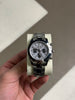 Equipped with a chronograph function, the "Platinum Meteorite" features three precisely arranged sub-dials, surrounded by sleek metallic hour markers that contribute to its contemporary aesthetic. The shiny bezel, marked with meticulously engraved numerals, enhances both its style and versatility.