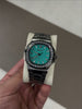 Introducing the "Tiffany Baguette Dial" wristwatch, an exquisite timepiece designed for those who seek elegance and style. This automatic watch features a stunning turquoise dial that stands out with its vibrant hue, perfectly complemented by silver-toned hour markers and hands. These reflective elements not only enhance readability but also add a sophisticated touch.