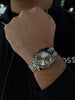 The combination of silver tones creates a harmonious visual balance, allowing the watch to transition effortlessly from casual to formal settings. The hour and minute hands are elegantly sculpted, often featuring a contrasting finish that adds depth and enhances legibility against the luminous backdrop. The watch may also include subtle details such as a date complication or custom engraving, making it a truly one-of-a-kind accessory.